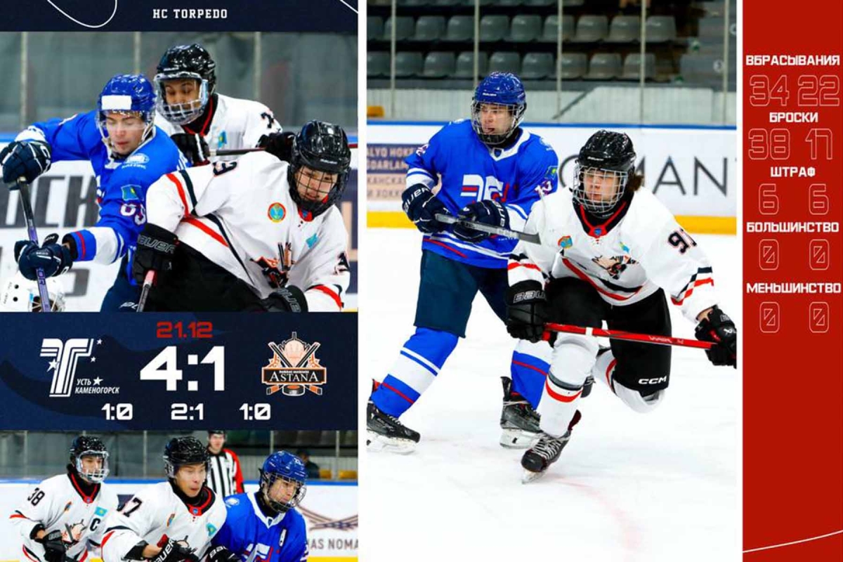 В домашнем матче молодежного чемпионата Казахстана по хоккею «Торпедо» одержало победу над «Астаной».