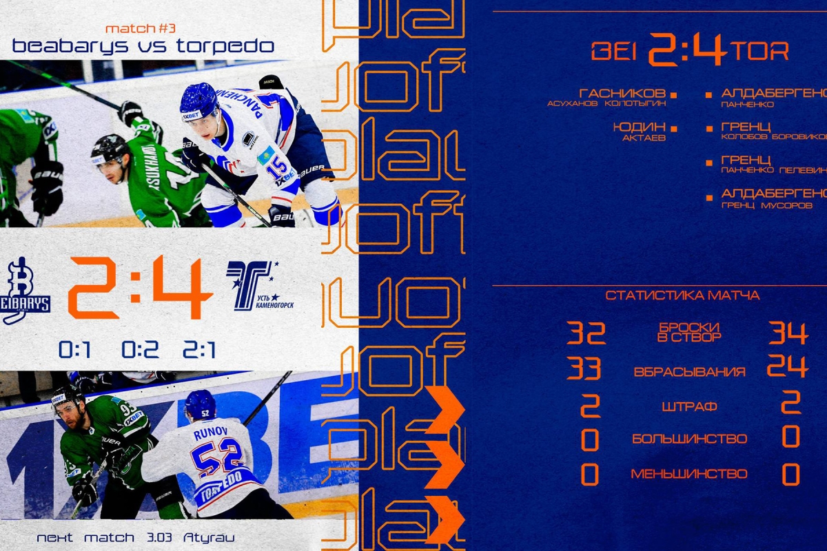 Плей-офф: «Бейбарыс» - «Торпедо» 2:4