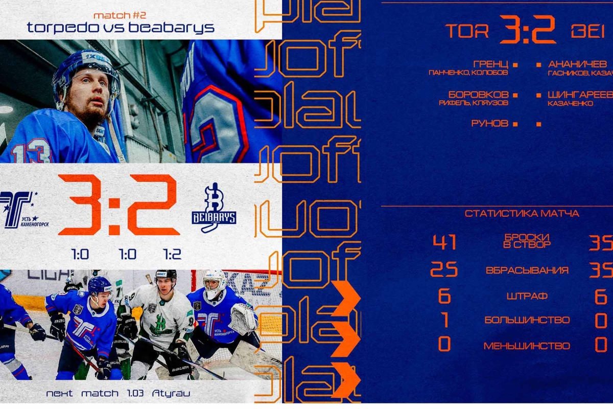 Во втором матче ¼ финала плей-офф «Торпедо» одержало победу над «Бейбарысом».
